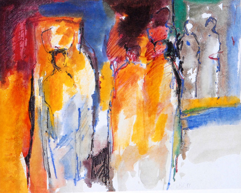 Prozession zum Tempel- Bali, 1999, Aquarell, 50x62