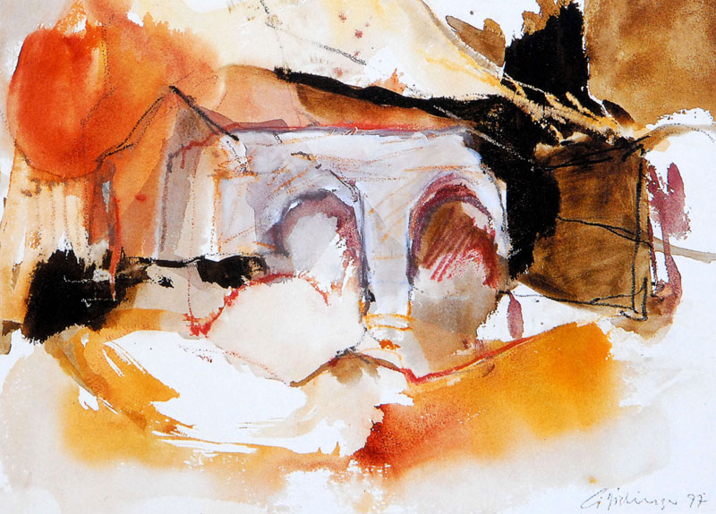 Brücke im Gebirge, 1999, Aquarell, 43x60 cm.